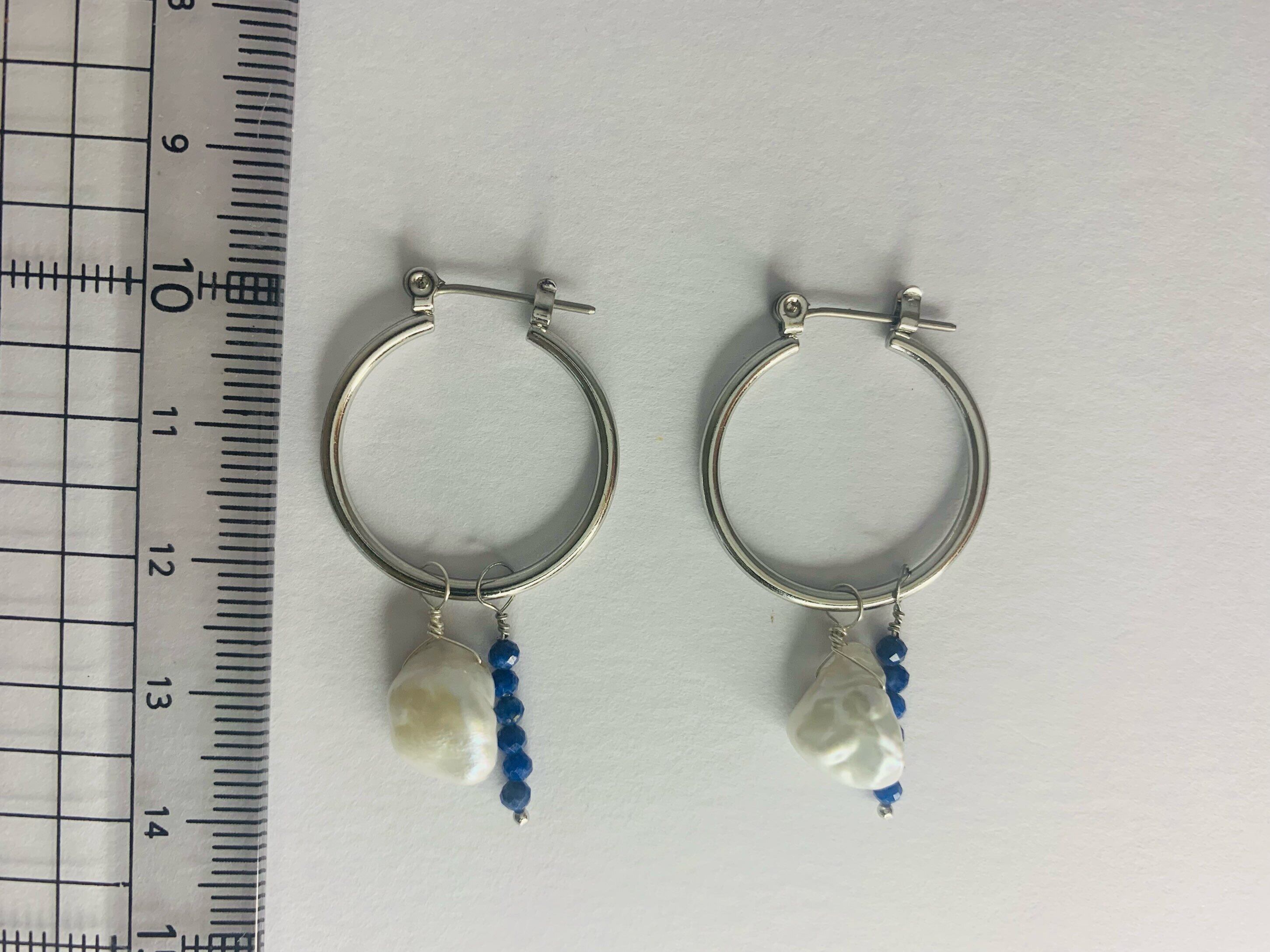 艶やかな淡水パールと、ブルーの美しいラピスラズリの組み合わせが魅力のアクセサリーです。