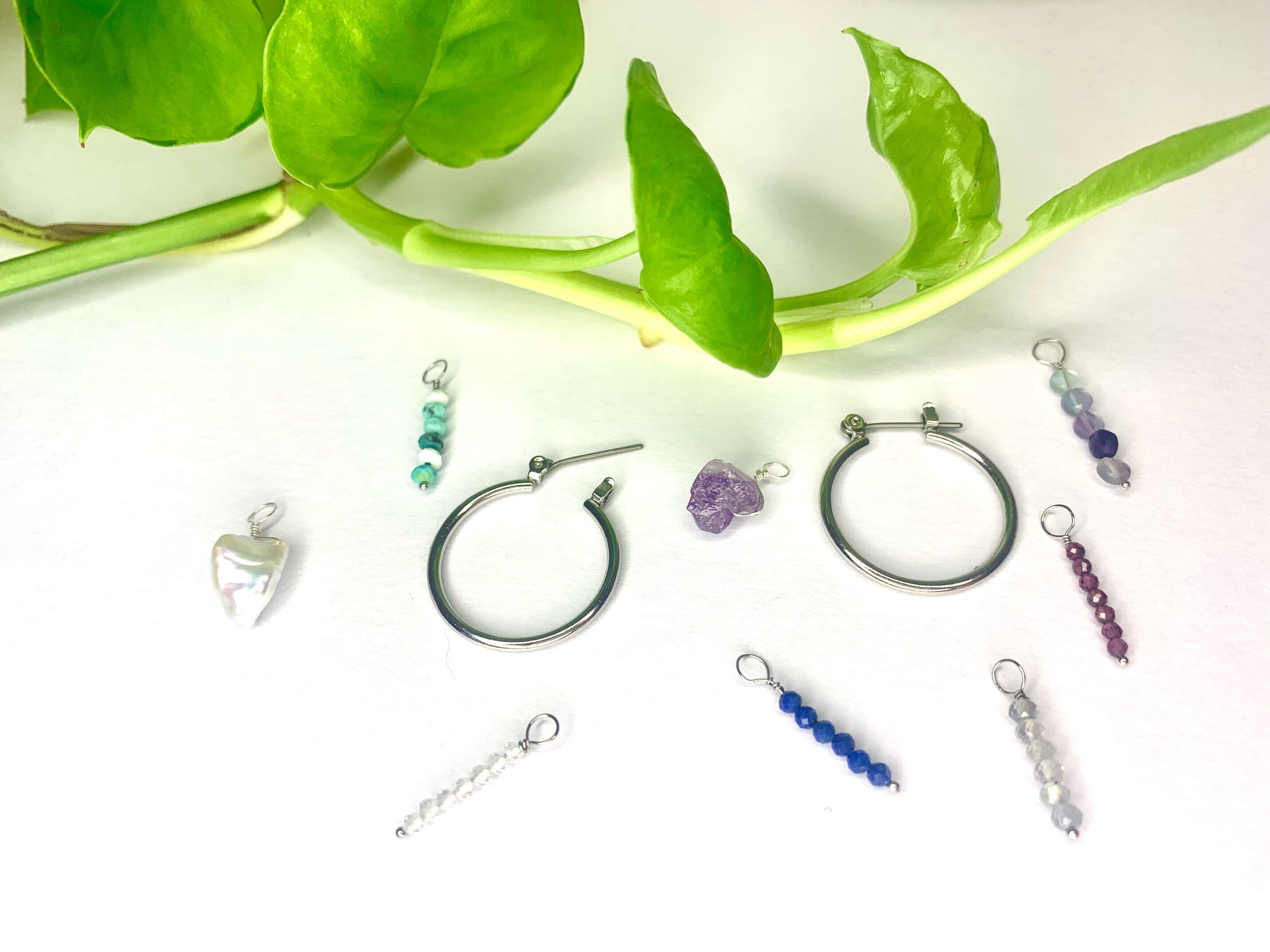 当店で販売している天然石パーツは全てこのフープに通すことが可能です。ご自身でお好きな組み合わせを選んでお楽しみください。